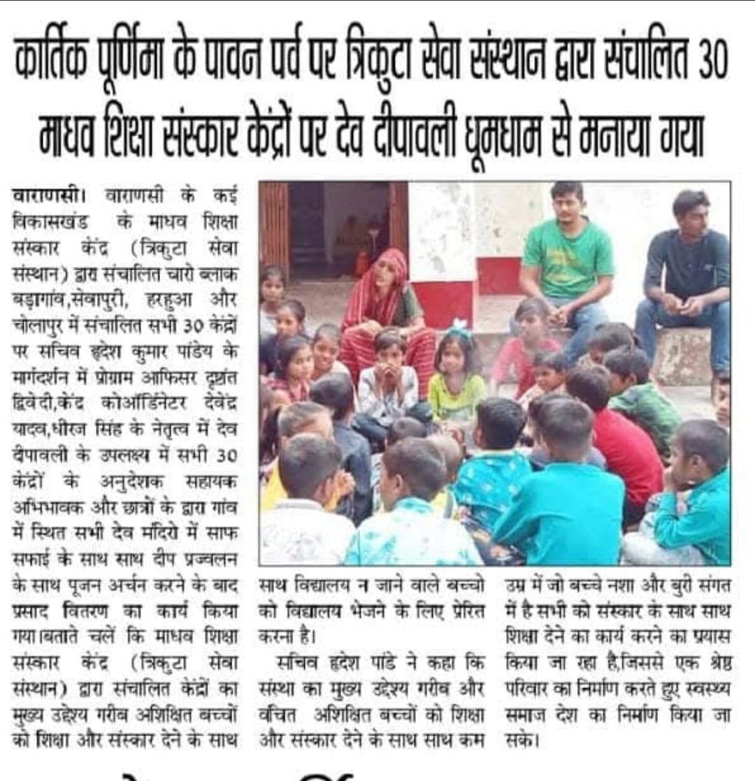 - Directly educating 2,000 children across 40 Madhav Shiksha Sanskar Kendras.